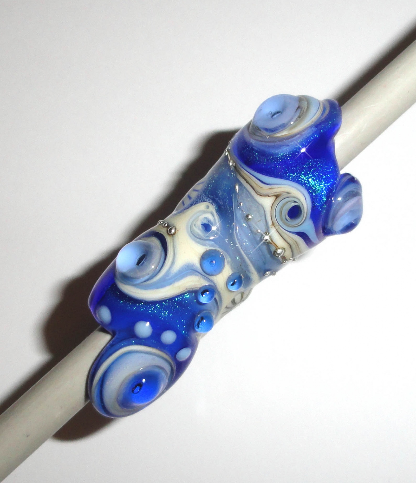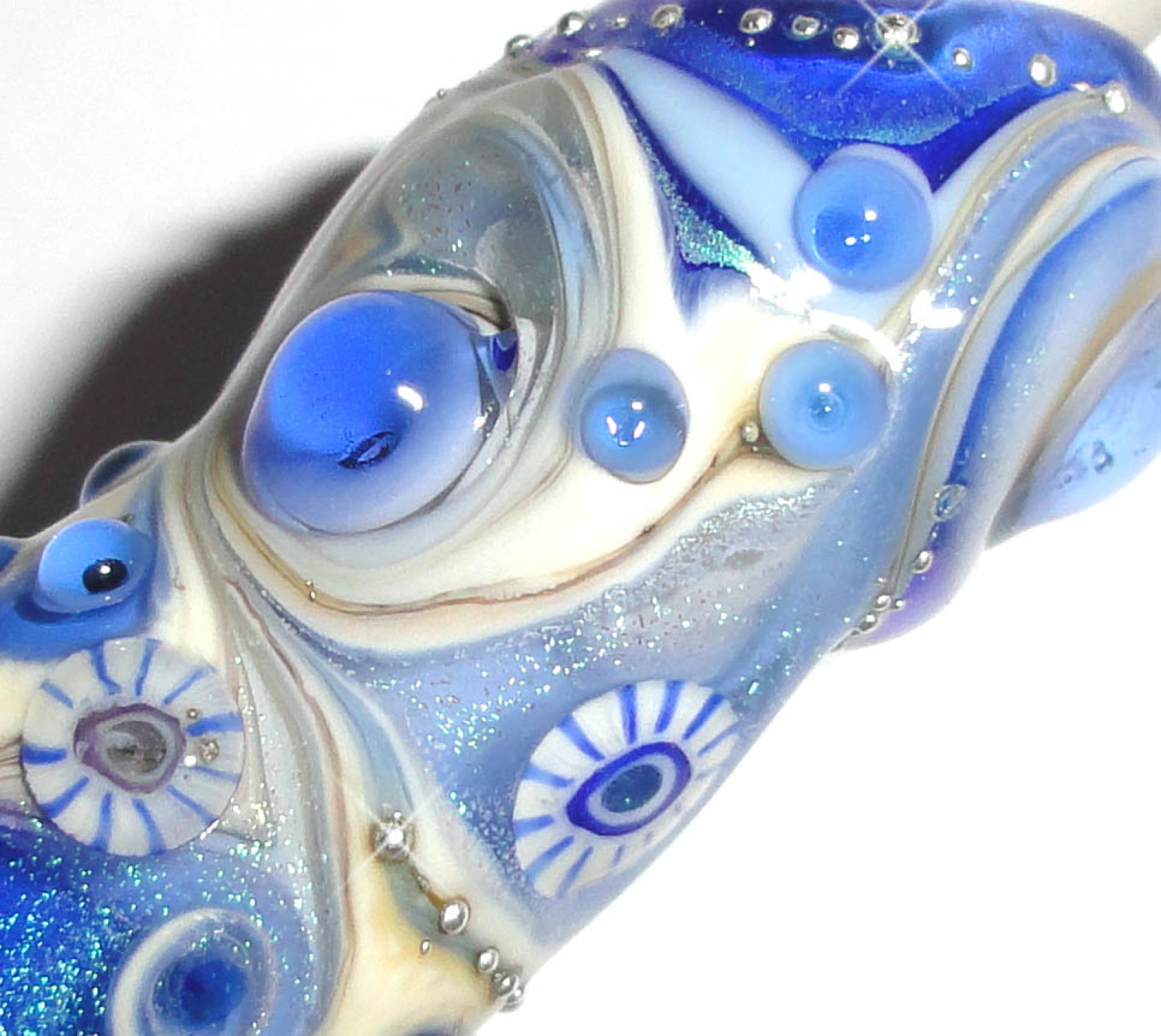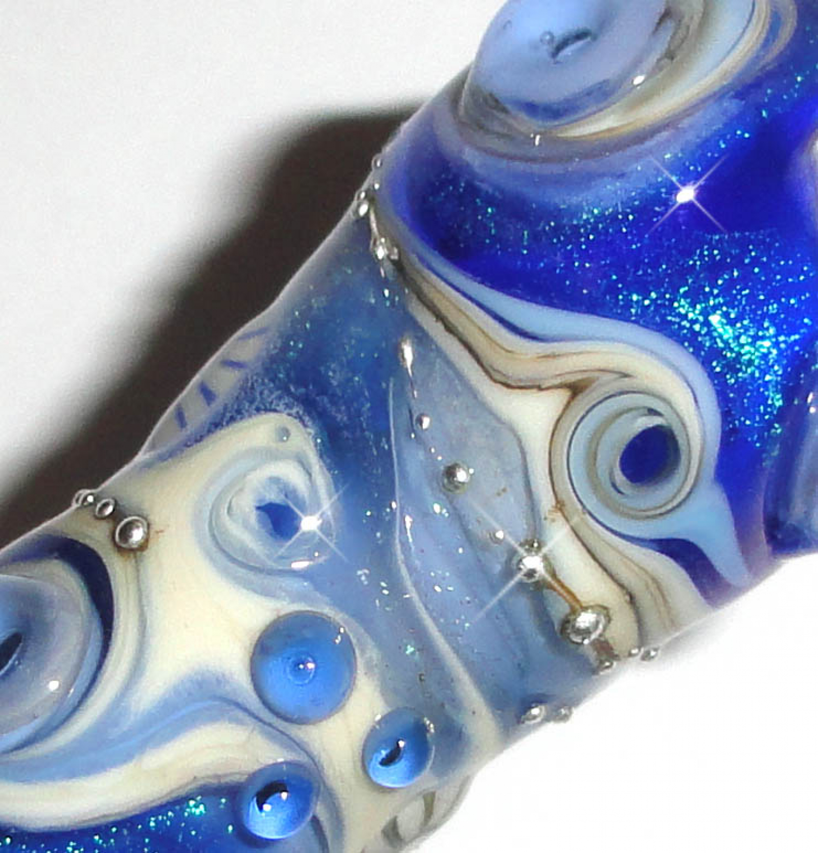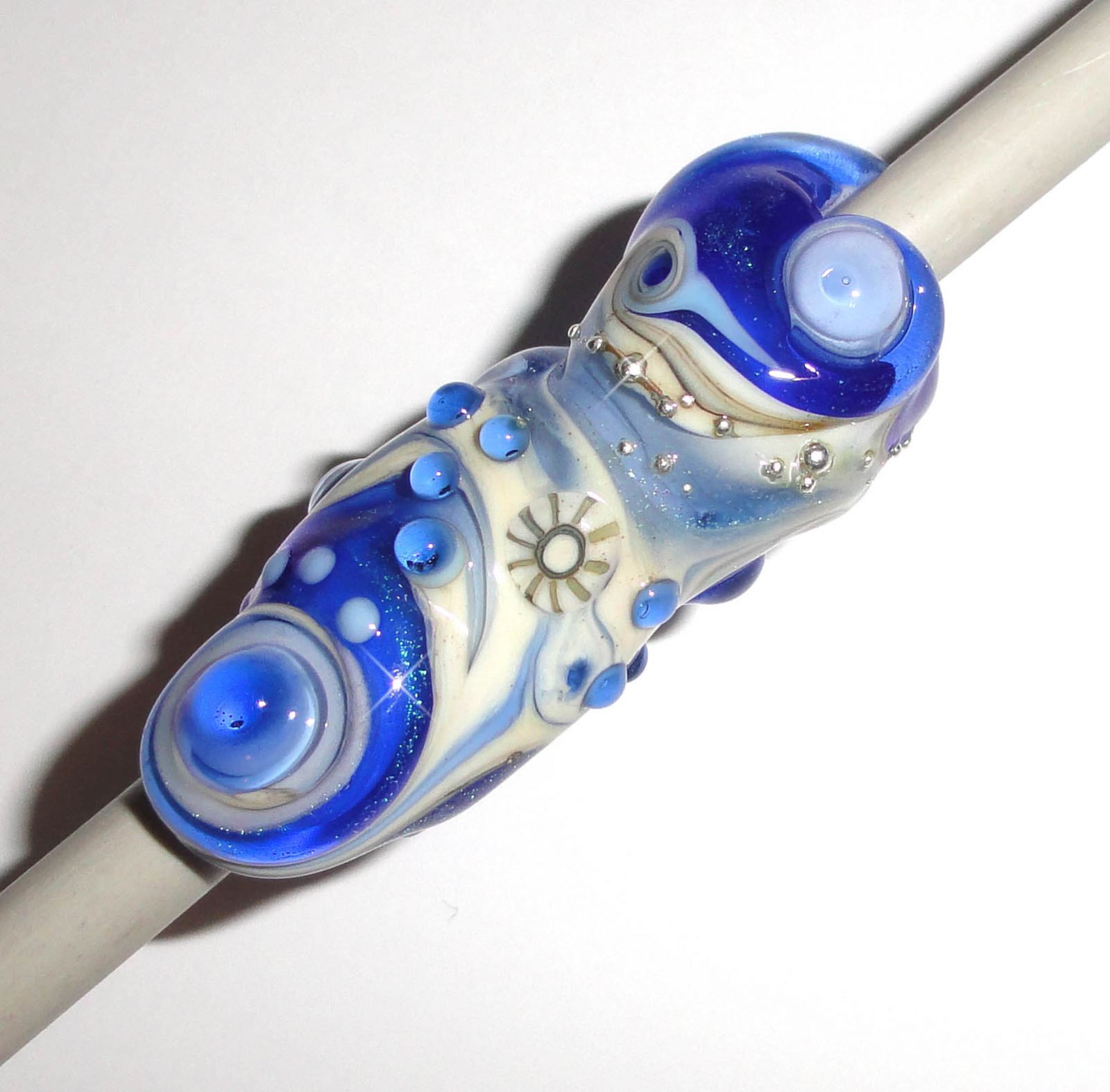 COLORS: Deep Ocean Blue, Sky, Light Ocean, Mottled Earth, pure silver trailing, 3 of my handmade murrini and lots of dichroic shimmer!