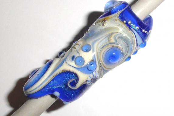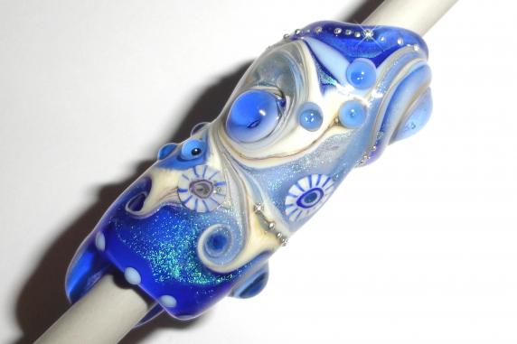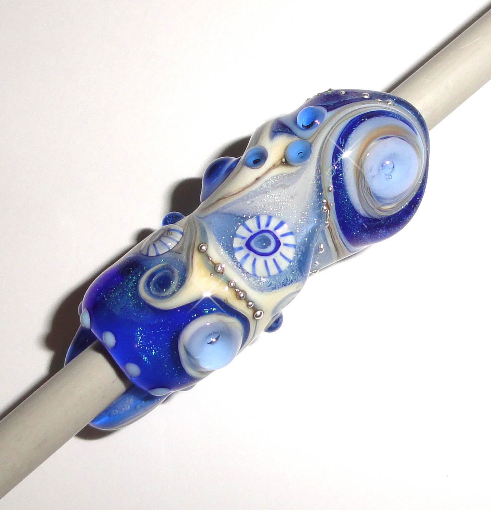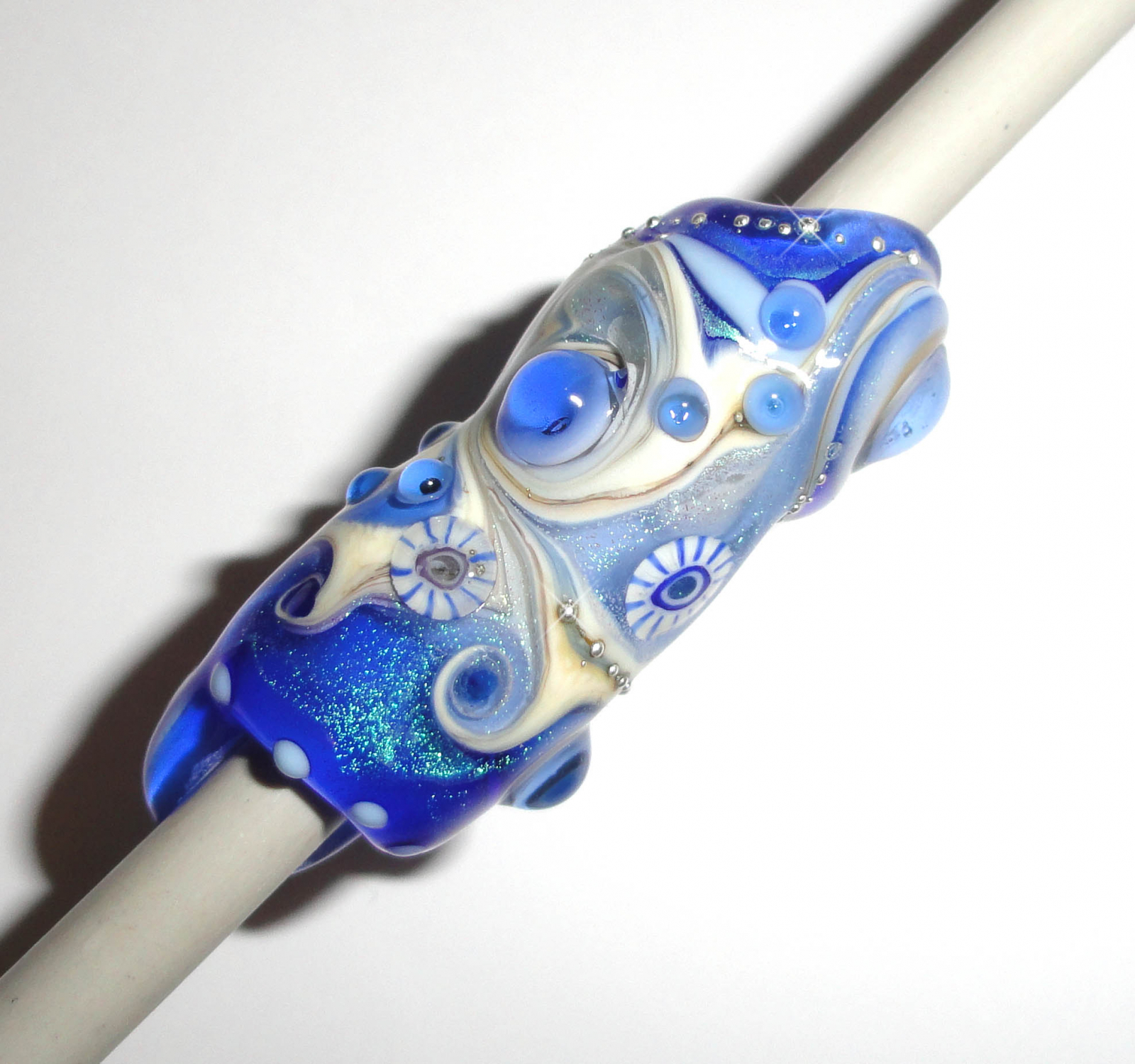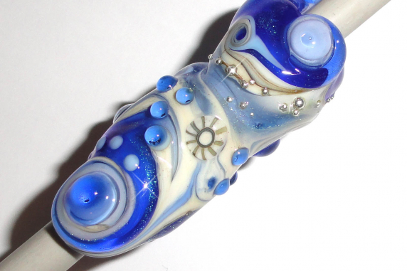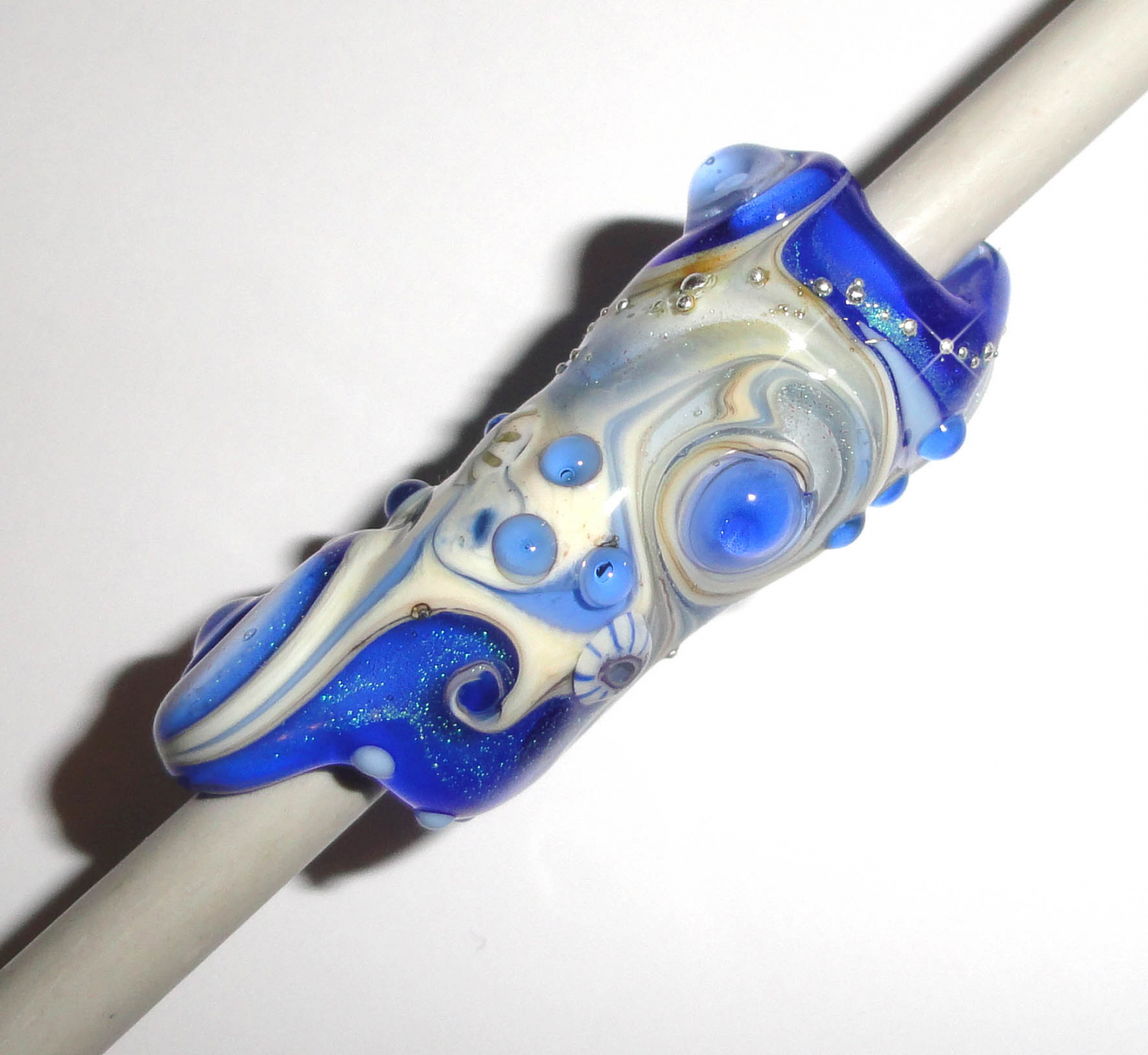 COLORS: Deep Ocean Blue, Sky, Light Ocean, Mottled Earth, pure silver trailing, 3 of my handmade murrini and lots of dichroic shimmer!