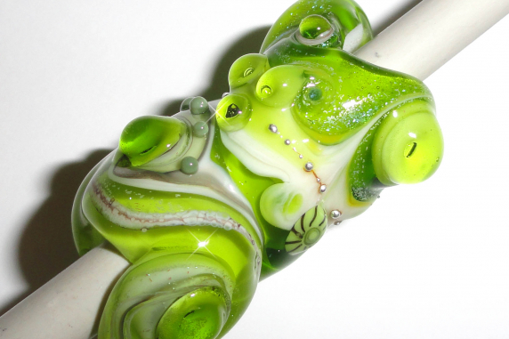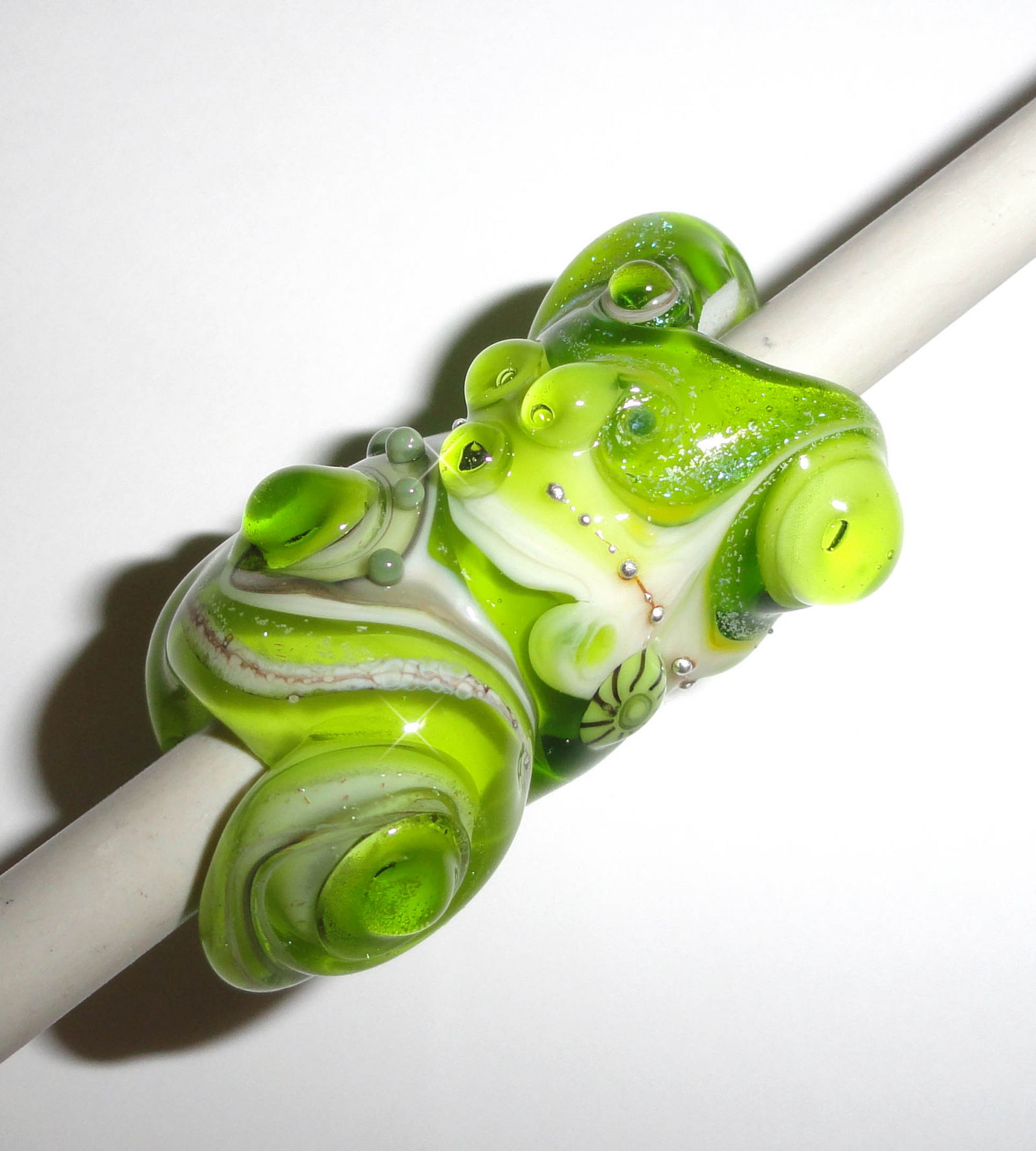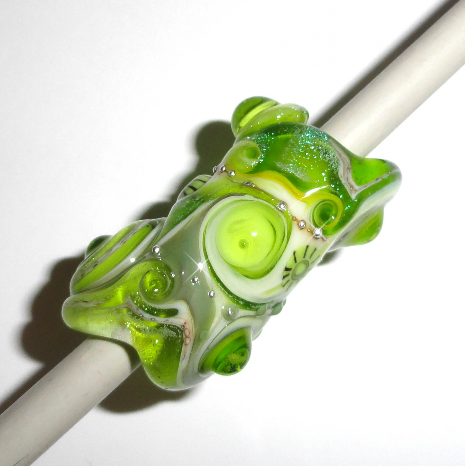 Dreaded "Green with Envy" Totem Pole Lampwork Glass Dread Bead. Ready to Ship! 10mm hole