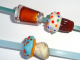 HOLE SIZE: Whisky shot and Cupcake have 5 mm holes (Pandora bead hole size but might be too long for that) And Mushie is 8mm
