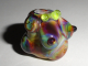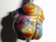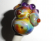 This round little Goddess is made with a highly reactive glass and does this sort of cool, color shift thing in different lights. Indoors she looks earthy with more caramels, earthy browns, darker blues and greens...and in outside or bright light she comes alive! She shows more of her golden and green and turquoise and purple in the sun. So pretty! At $100 per lb. this is one of the most expensive glasses on the market today but it's SO worth it!