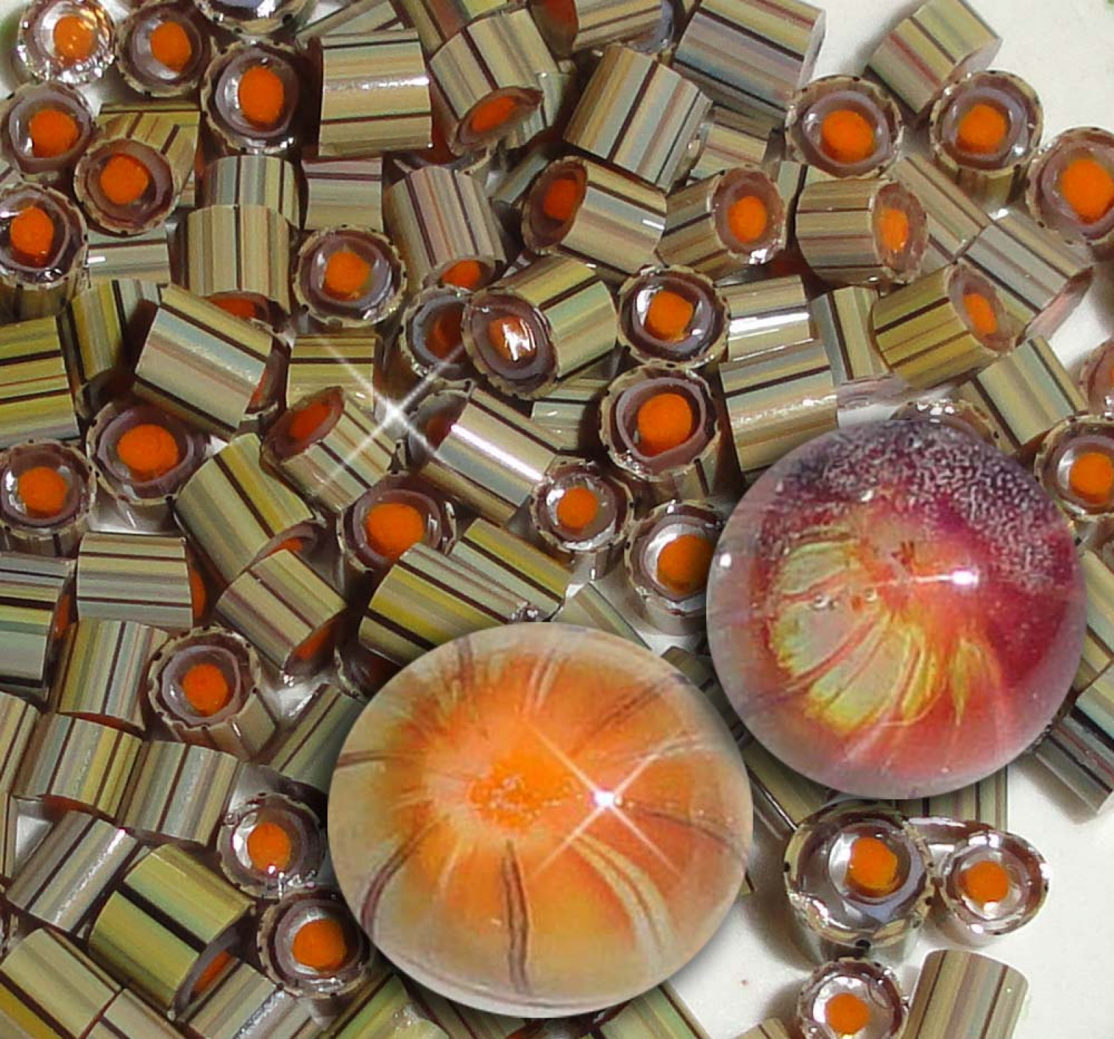 Flambe'.....Handmade Murrini Chips...Millefiori Slices......COE 104 Autumn orange flame lampwork bead Beatlebaby Supply