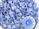 Flow Blue is a style of white earthenware or porcelain, that originated sometime in the 1820s, among the Staffordshire potters of England. The name is derived from the blue glaze that blurred or "flowed" during the firing process. These don't blur so much as it's just referring to the colors in the murrini itself. The lines and colors tend to stay more crisp and defined. Great for fusing and enamel work too!