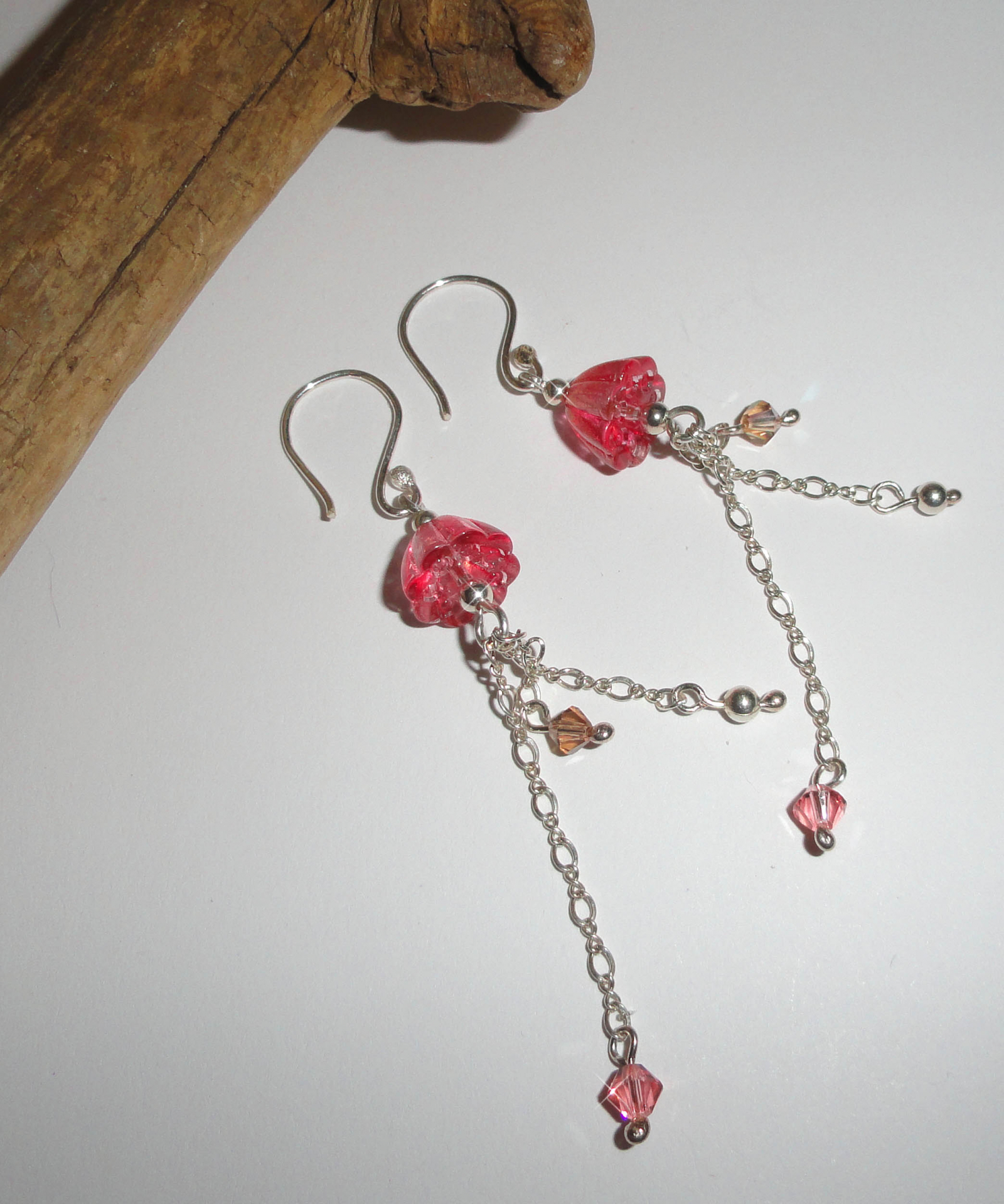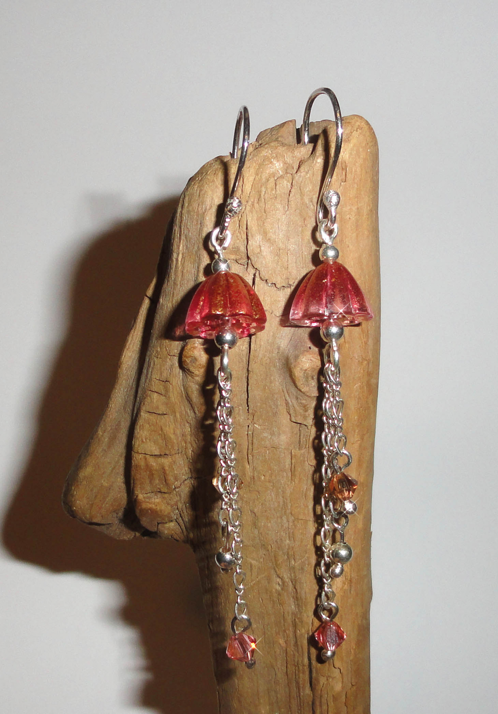 Makin' me Jelly! ... Handmade Jellyfish Earrings in PINK. Sterling Silver, Glass and Swarovski Crystal