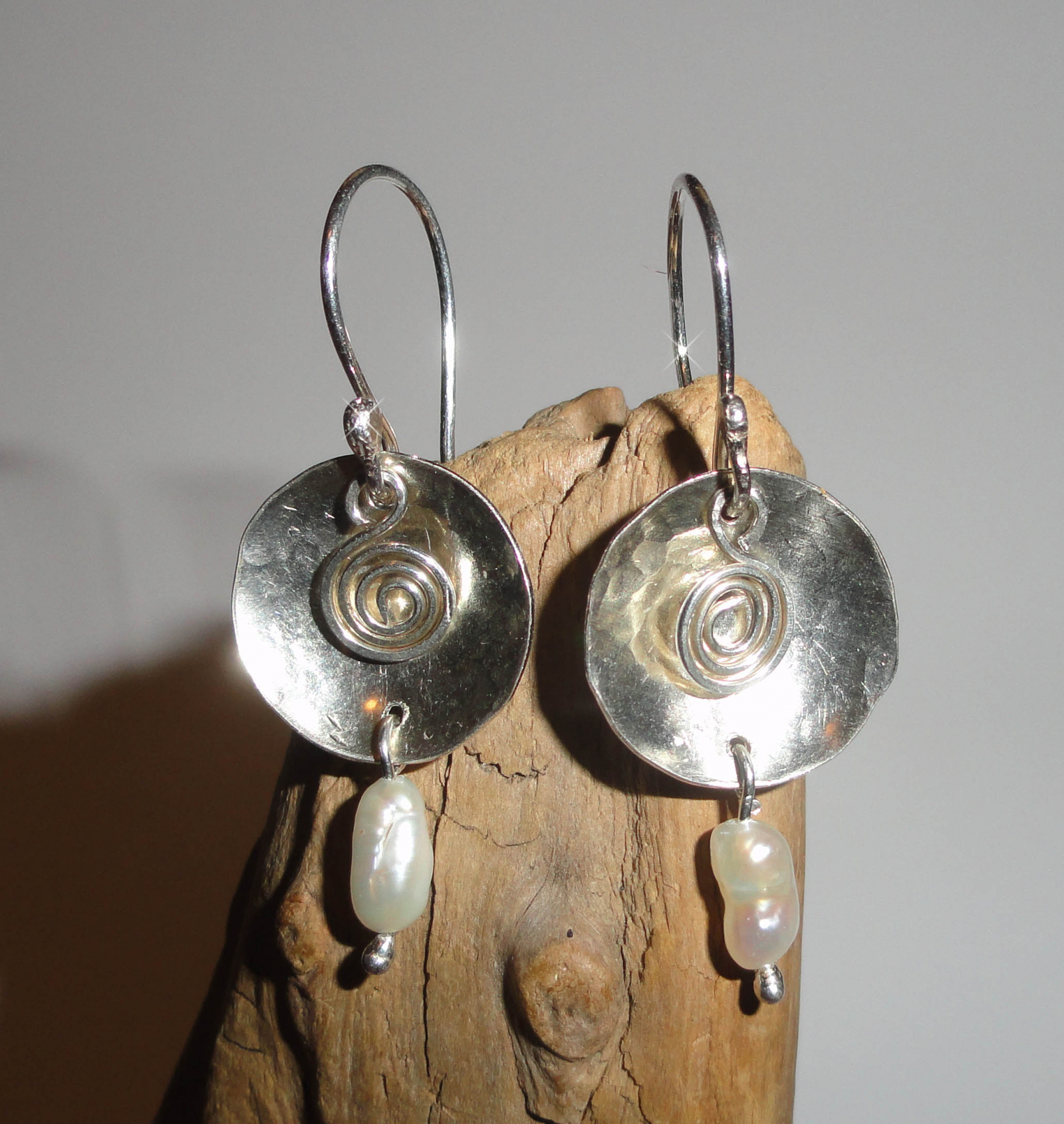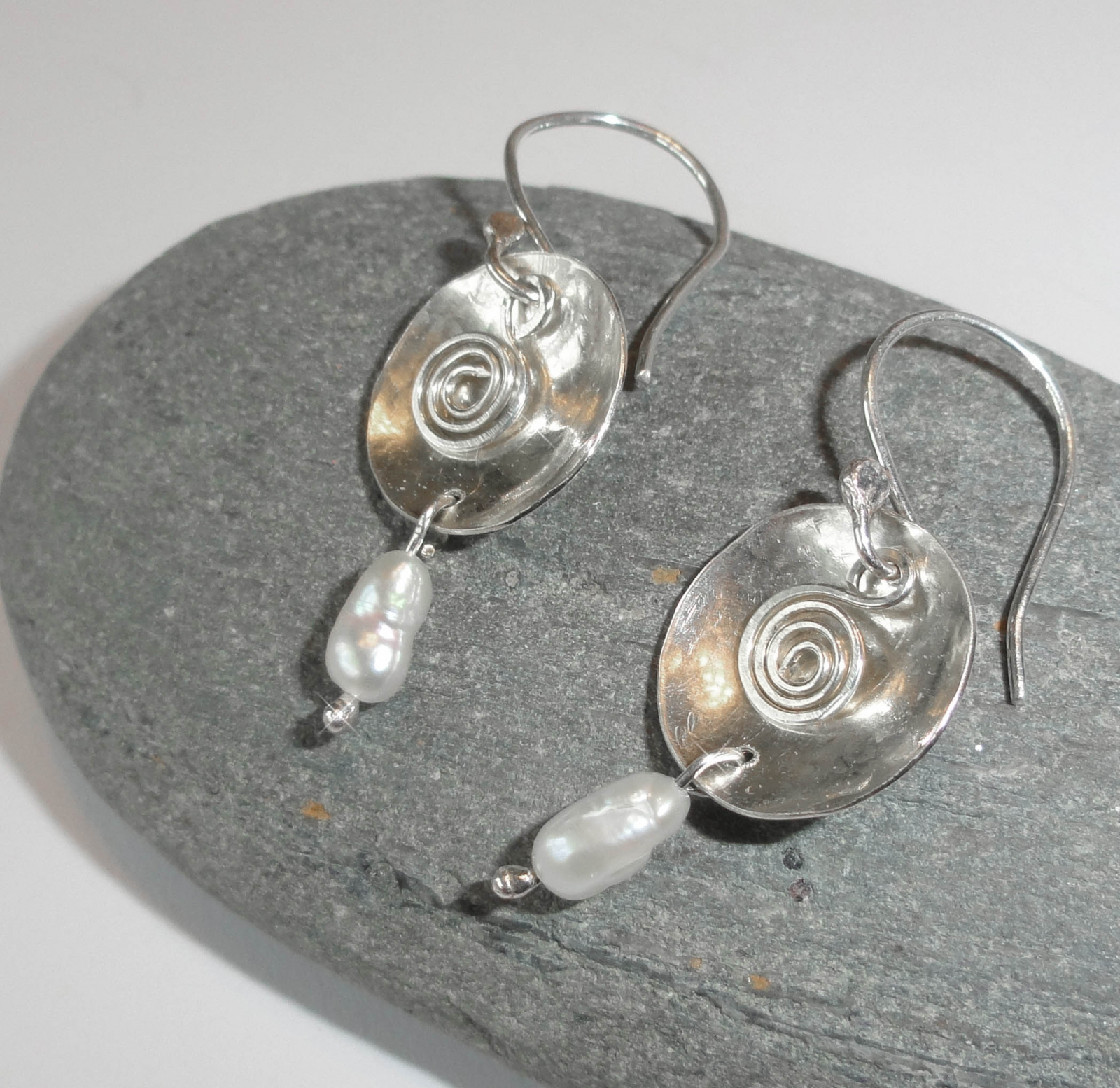 Swirls and Pearls ... Handmade Earrings. Sterling Silver, Freshwater Pearls