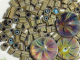 Wicked Wahini.....Lampwork Glass Bead Murrini 104 COE Reactive Silver glass chip slice stripe purple green Beatlebaby Supply